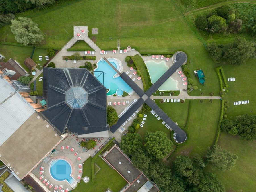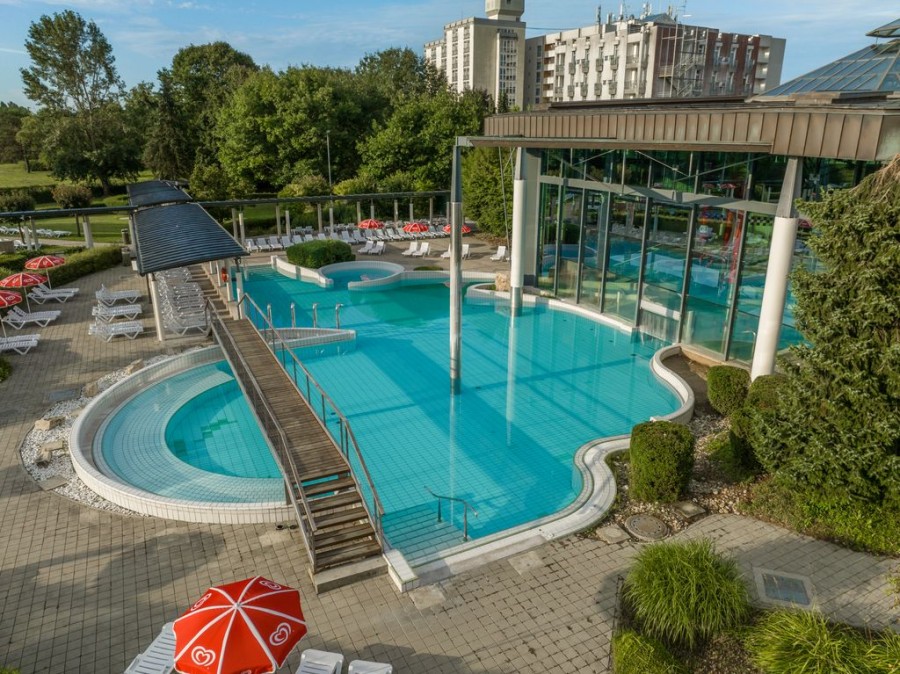Všechny hotelové budovy jsou propojeny rozsáhlou termální oázou s vnitřními i venkovními bazény, masážními tryskami a místy k relaxaci. Součástí je i moderní wellness centrum, kde si můžete dopřát masáže, rituály, zábaly nebo saunový svět.