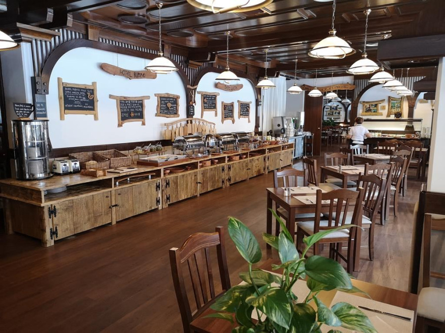 Stravování: V ceně ubytování je zahrnuta polopenze. Snídaně i večeře se podávají v prostorné dřevěné hotelové restauraci, v létě si je můžete vychutnat také na terase s výhledem do zeleně. Snídaně se podává formou bohatého bufetu. Večeře mají při dostatečném počtu hostů podobu bufetu, v případě malého počtu hostů je na výběr ze tří druhů menu o čtyřech chodech. Večeře se skládají převážně z tradičních jídel slovinské kuchyně, ale najdete zde i pokrmy z mezinárodní kuchyně. Nealkoholické nápoje, káva a čaj jsou u snídaně v ceně, u večeří se nápoje doplácejí zvlášť. Hotel nabízí také možnost bezlepkové stravy (na vyžádání).